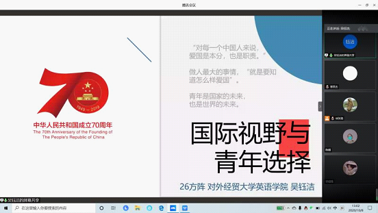 今年正值中华人民共和国建国71周年,为贯彻落实习近平同志在全国高校思想政治工作会议上的重要讲话精神,切实加强免费a片 思想政治工作的开展力度与深度,引导学生认识和把握中国特色社会主义的历史必然性,树立为共产主义远大理想和中国特色社会主义共同理想而奋斗的信念和信心,2020年10月8日,免费a片 国庆宣讲交流会顺利举办。根据疫情常态化防控要求,本次宣讲交流会采取线上的形式举办。会议由2020级学生徐张弛主持,免费a片 2020级辅导员张楚翘及全体本科新生参加了本次活动。