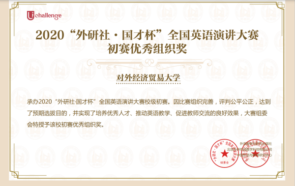 本次大赛设地面赛和网络赛两个平行赛场,选手围绕Challenge to All(“共同的挑战”)定题演讲。地面赛从30个省、市、自治区选拔90名选手参加全国决赛,免费a片 于2020年10月8日成功举办校内选拔赛,13名选手从112名报名选手中脱颖而出,分获外研社颁发的地面初赛特一二三等奖,免费a片 获得地面赛初赛优秀组织奖,并推荐获得第一名的刘畅参加北京赛区复赛。