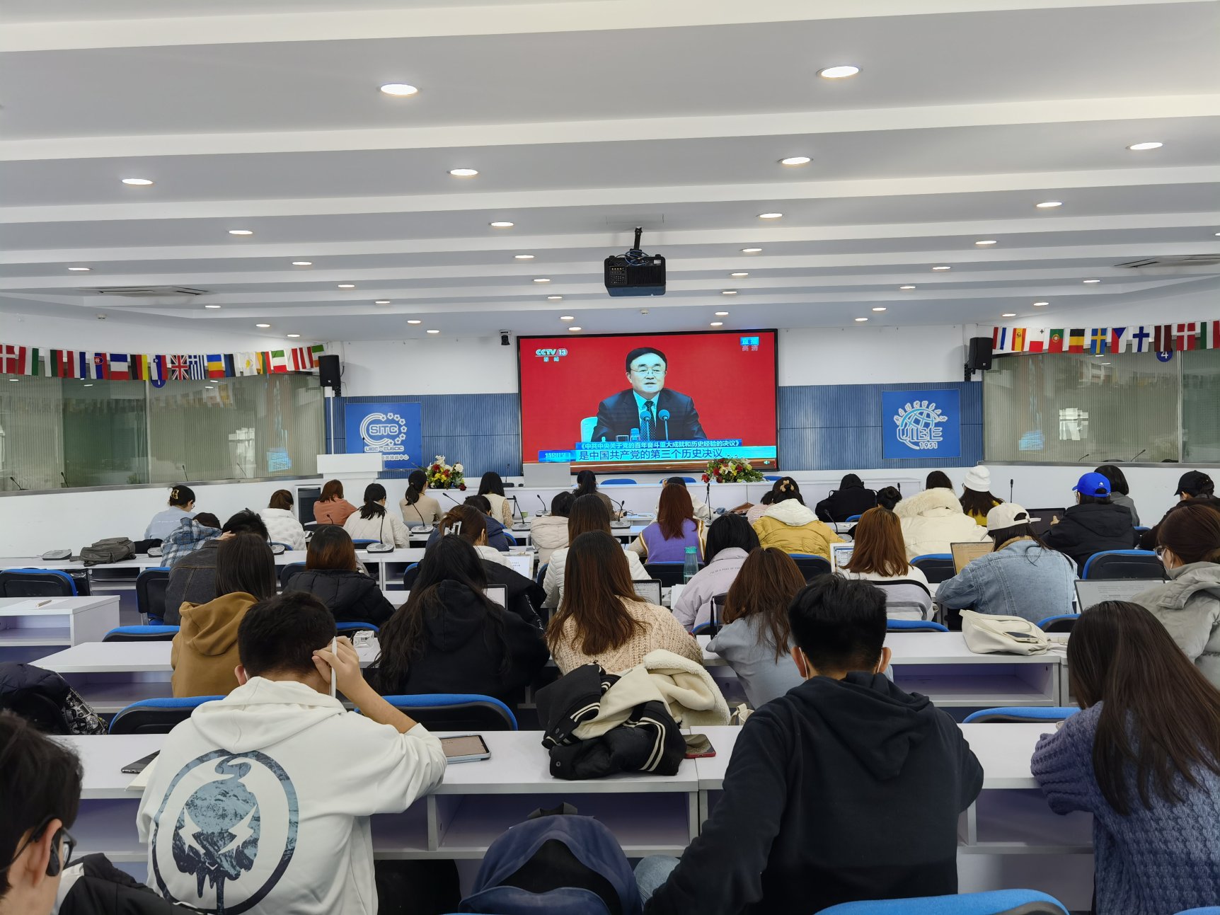 中国共产党第十九届中央委员会第六次全体会议于11月8日至11日在北京召开。中共中央政治局向中央委员会报告工作,重点研究全面总结党的百年奋斗的重大成就和历史经验问题。11月11日上午,免费a片 本科生联合党支部组织支部党员在诚信1412观看中共中央新闻发布会直播,认真学习、深刻领会全会精神。
