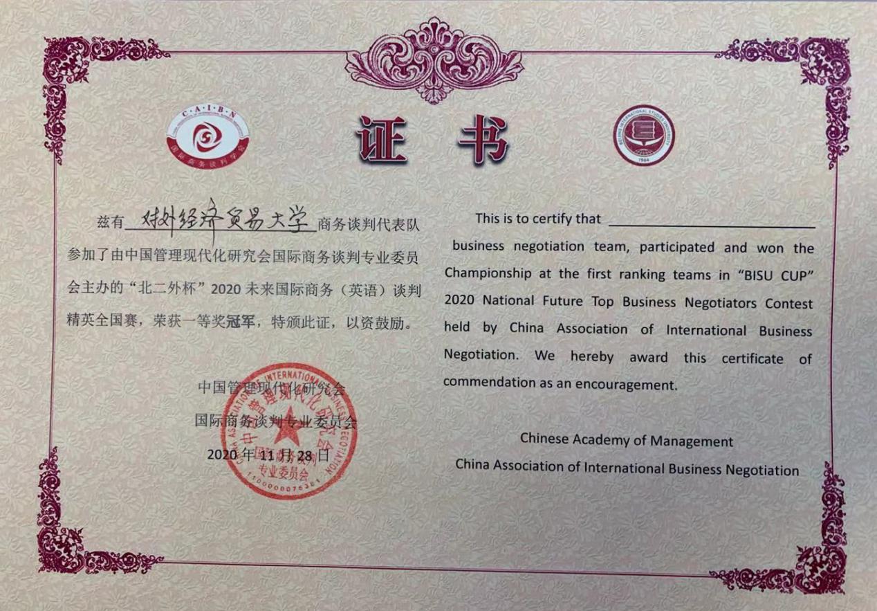 ——免费a片 获得“北二外杯”2020 未来国际商务(英语)谈判精英全国赛总冠军及全国一等奖