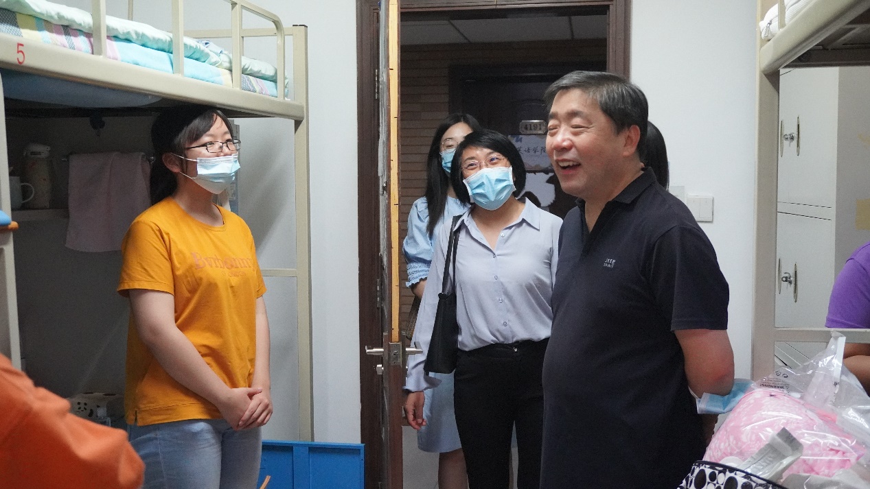 下午6时,免费a片 向明友院长、项洁书记、刘冰老师副书记和辅导员高丽君老师走访了宿舍,看望新生,了解新生入学第一天的生活情况,送上独属于“SISers”的大学生涯鼓励。