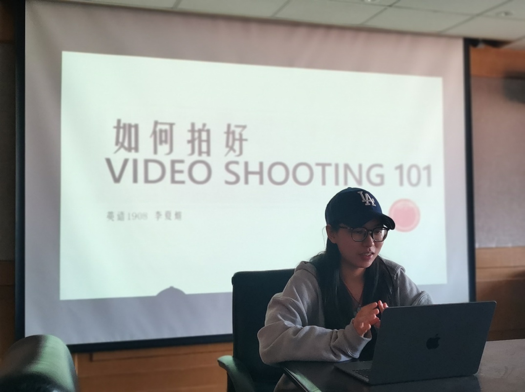 3月26日下午,本科生联合党支部李夏煊同学在诚信楼1314为大家介绍了视频拍摄的相关经验。她结合自己的学习经验,介绍了故事型短片、采访类视频和创意视频的拍摄。李夏煊同学首先播放了三个自己在本科阶段拍摄过的短片,让同学们对不同类型的视频内容有基本了解。随后,她从选题、脚本、拍摄、后期几个方面分别介绍了视频拍摄的技巧。在分享中,李夏煊同学为同学们介绍了自己寻找选题灵感的方法、拍摄时常用的运镜手法和后期调色技巧,并介绍了提高图像审美素养的方法。