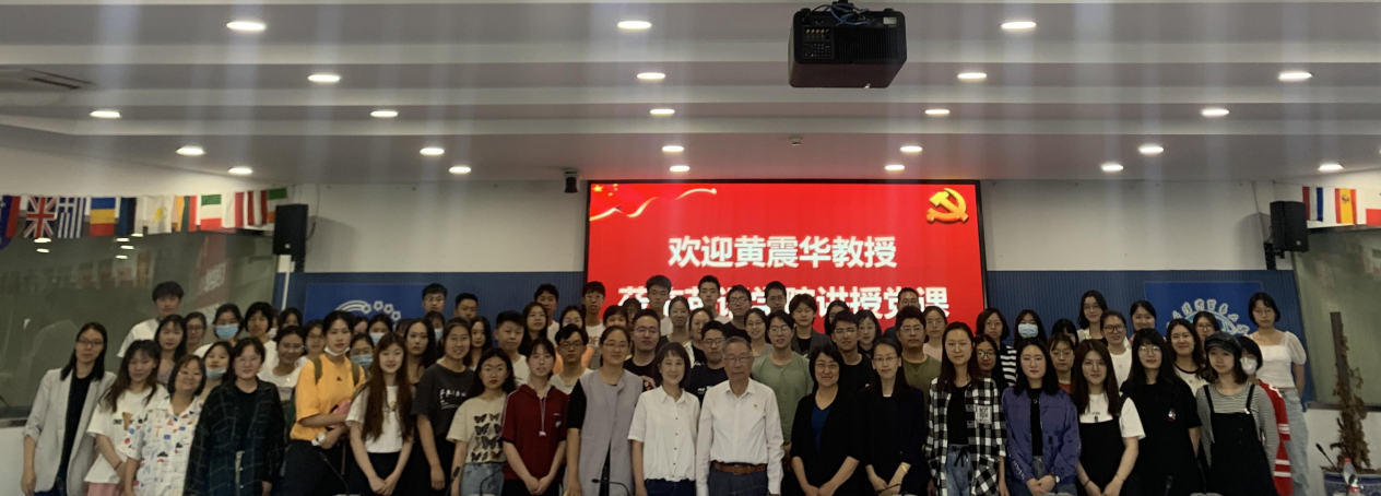 讲座结束后,支部还向黄震华教授赠送了由支部党员开展的“党史学习指定书目《习近平新时代中国特色社会主义思想学习问答》学生党员朗读活动”的U盘,并合影留念。