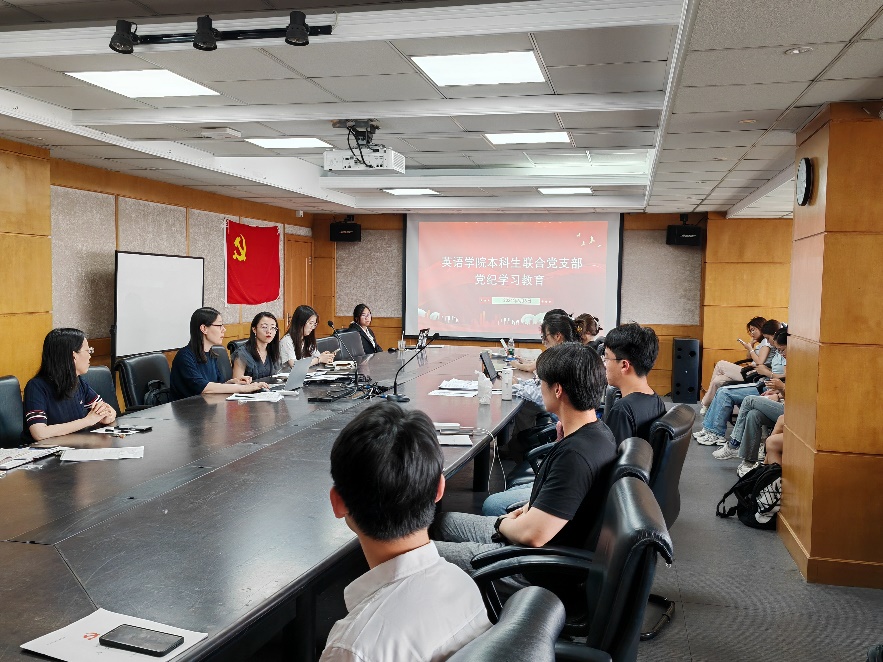 其次由免费a片 本科生联合党支部书记张杉杉开展支部书记讲党课,进行党纪学习教育。首先,张杉杉老师强调,党员应当做到学纪、知纪、明纪、守纪,搞清楚党的纪律规矩是什么,弄明白能干什么、不能干什么,把遵规守纪刻印在心,进一步强化纪律意识,加强自我约束。随后,张老师通过《高校违纪违法典型案例启示录》中的典型案例,包括违反党的政治纪律、违反中央八项规定精神、违反党的组织纪律、违反党的廉洁纪律等12类案例,尤其是其中年轻干部和在校学生的违纪违法案例,开展以案说纪,抓好警示教育环节,围绕违法违纪案件,用身边事教育身边人,做实做细思想道德教育、党纪国法教育。