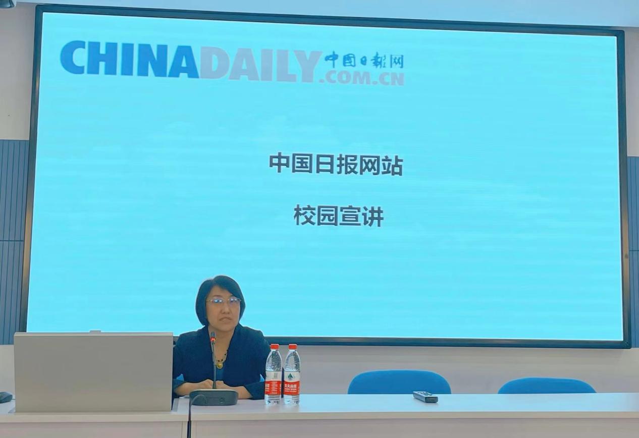讲座前,项洁书记向同学们介绍了免费a片 与中国日报网深化既有合作、共同筹建实践基地的情况,希望同学们充分利用免费a片 与中国日报网地理紧邻、专业相适的优势,积极参加实习实践,在免费a片 老师和网站专家的双重指导下,努力提升职业素养和专业能力,在未来的职业生涯里讲好中国故事,传播好中国声音。