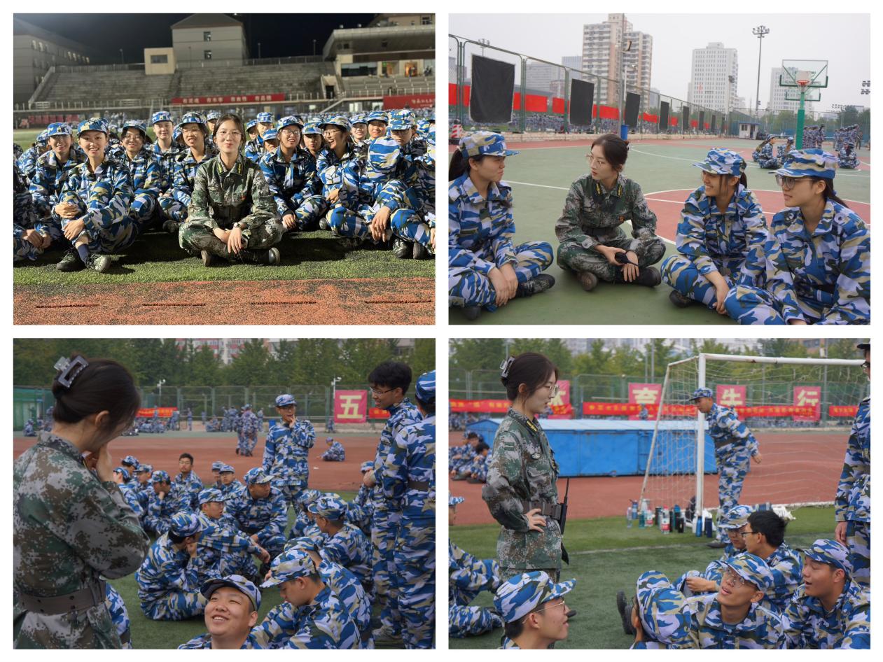 军训期间,副书记刘冰老师数次走进训练场,与辅导员段菲老师一同在训练间隙与参训同学亲切交流,了解同学们对军训的感想和体会,在同学们疲惫时予以鼓励,帮助大家调整状态、保持士气。