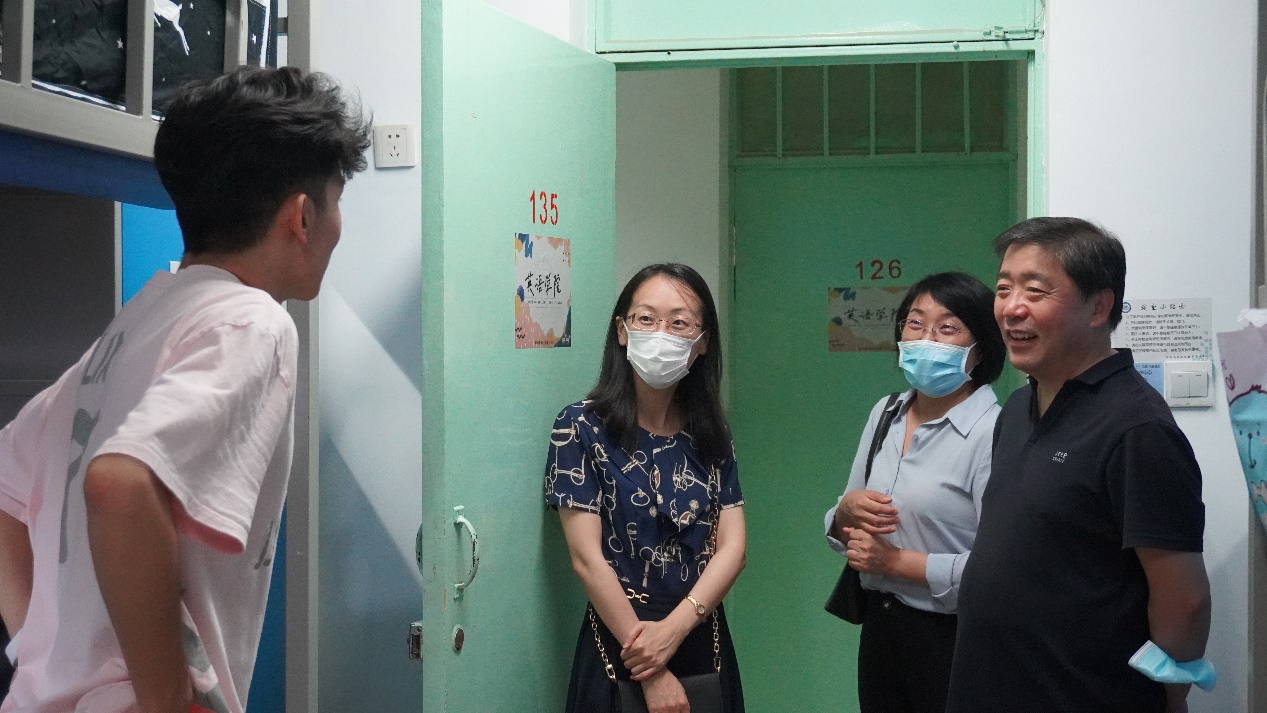 下午6时,免费a片 向明友院长、项洁书记、刘冰老师副书记和辅导员高丽君老师走访了宿舍,看望新生,了解新生入学第一天的生活情况,送上独属于“SISers”的大学生涯鼓励。
