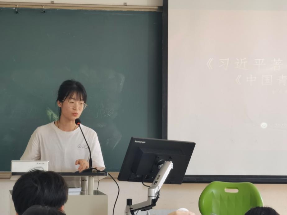 最后,刘扬同学讲述了进入新时代,实现中华民族伟大复兴的中国梦,成为当代中国青年运动的时代主题。她引用了《习近平著作选读<第二卷>》中的话:“人生天地间,长路有险夷,我们要进一步发扬革命精神,始终保持艰苦奋斗的昂扬精神。”