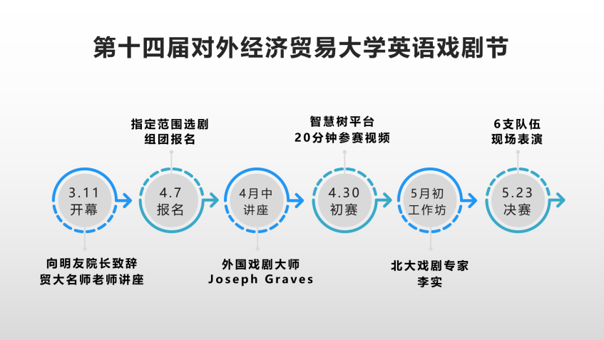 对戏剧文化的重视以及对参与大赛组织策划的教师的感谢。然后,他真挚地鼓励同学们积极参与到戏剧实践之中,希望同学们不仅仅把戏剧大赛当成一场比赛,更要享受筹备和表演戏剧的过程。