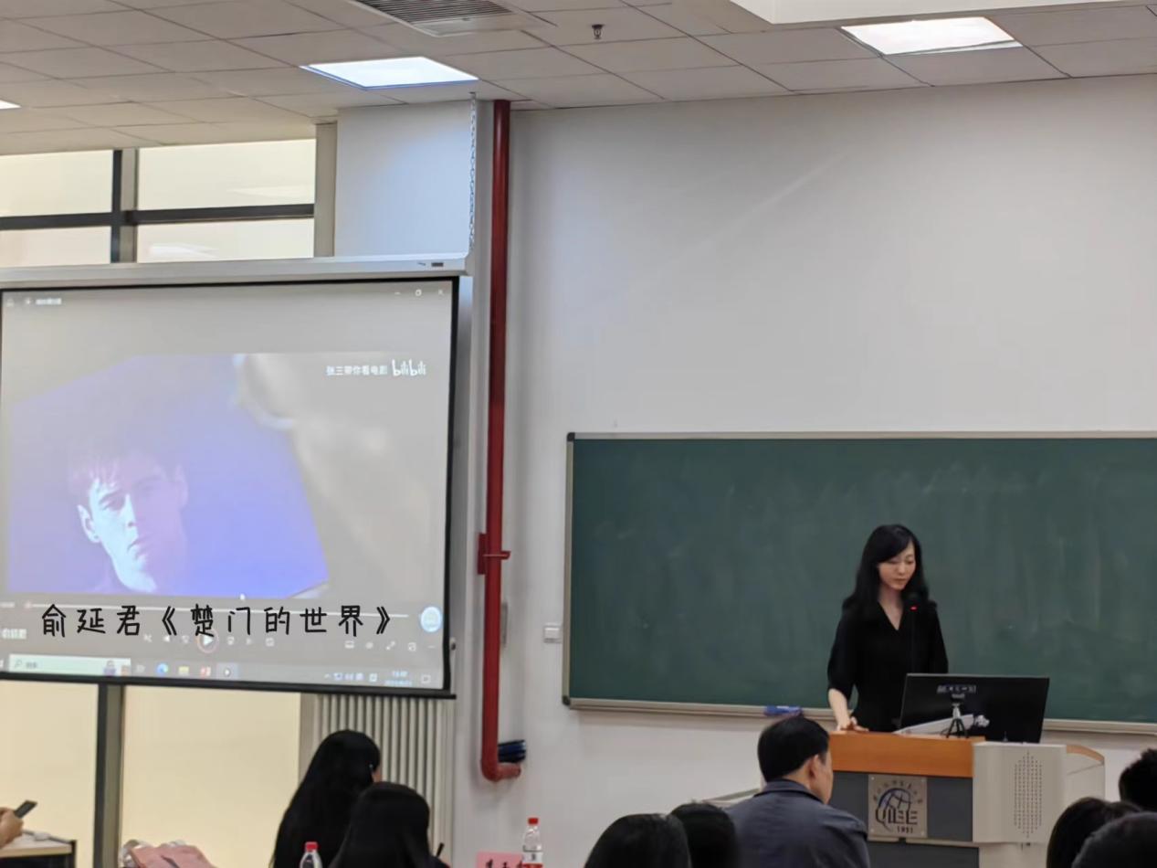 竞演结束后,评委老师们对参赛同学的精彩表现作出指导点评。老师们强调了在配音比赛中片段选择、情绪调动、情景演绎等的重要性。李军老师从自身多年对戏剧表演的研究与经验出发,对选手们的参赛选段的选取与风格再现、英文配音过程中的语调与节奏、舞台的表现力与情感表达等方面进行了精彩点评。牟童老师则对选手的选题题材进行点评,指出配音比赛中题材的重要性,例如俞延君同学所配的《楚门的世界》,吕弈昂同学配的《鸟瞰中国》都是比较新颖的题材,不容易与其他选手撞车,更容易让评委老师记住。牟童老师鼓励选手及观众敢于创新、敢于试错,给大家带来很大的启发。