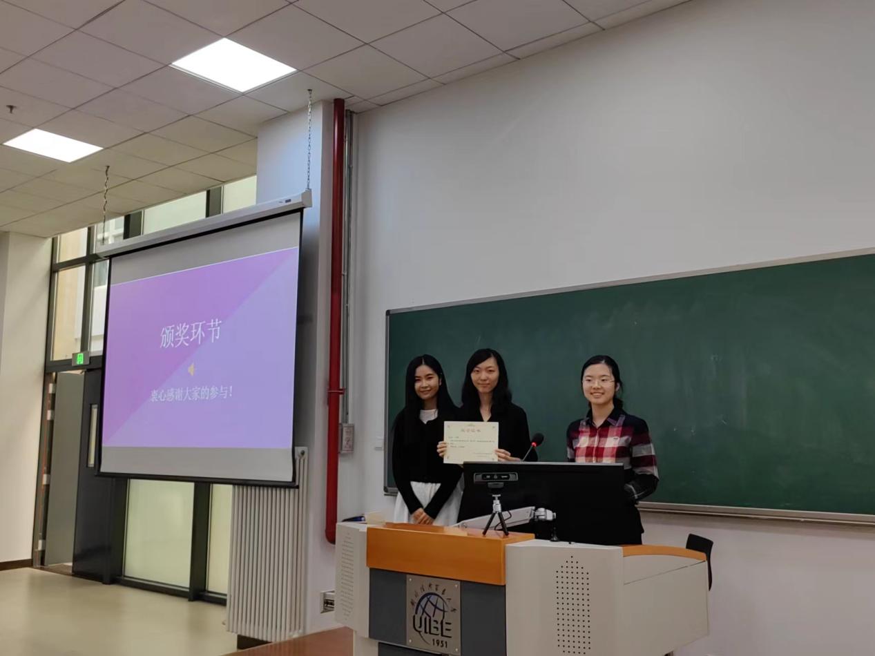 中场休息环节,评委老师们就选手表现进行了交流与探讨,选手们也稍作休息,等待计分人员计算出前七位选手得分。主持人宣布前七位选手的成绩后,比赛正式进入下半场,杨弈麟、陈怡杉、罗文茜等同学带来了《怦然心动》《莎翁情史》《小妇人》等优秀作品的配音。