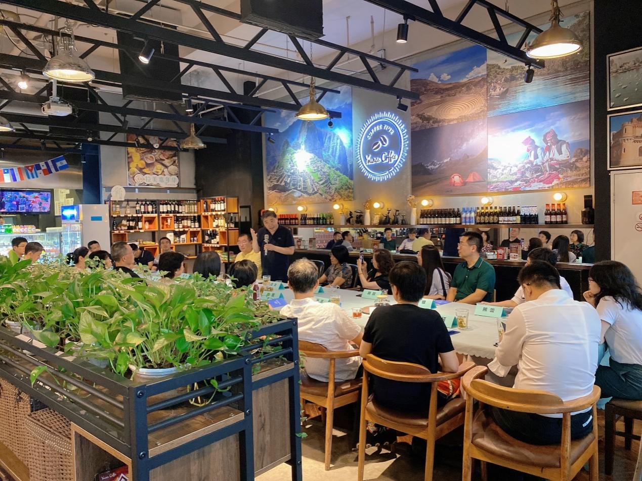 2021年8月6日,免费a片 新一届领导班子走访贸大校友平台“北京友你餐吧”。院长向明友、副书记(主持工作)项洁、副院长江春、副院长金冰、院长助理石小军、办公室主任韩放与20余位校友欢聚一堂,共叙惠园二三事。