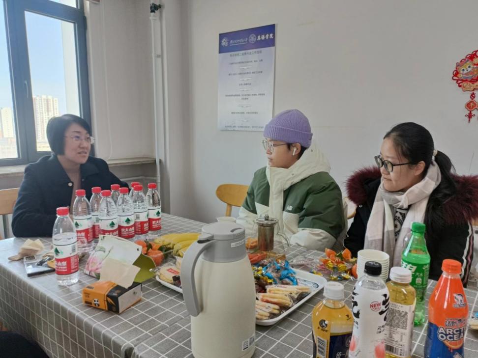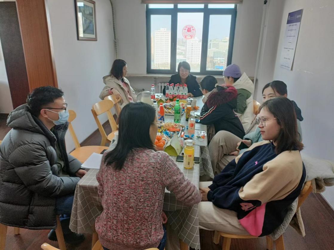 党委书记项洁、党委副书记刘冰、研究生辅导员王公元及留校过年的部分同学欢聚一堂,共迎新春佳节。