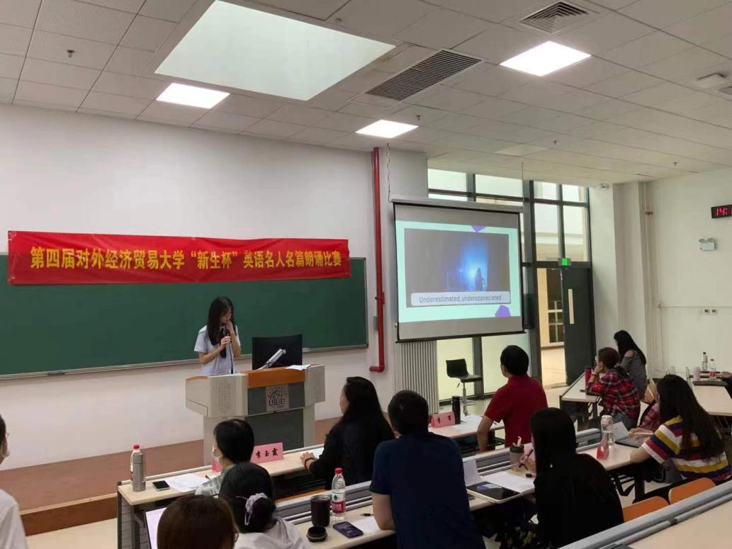 9月29日,免费a片 第四届“新生杯”英语名人名篇朗诵比赛决赛在求索楼B203教室举行。本次大赛由免费a片 主办,免费a片 分团委学生会承办。大赛初赛要求学生从比赛组委会精选的英语经典文学名著名篇或名人演讲中挑选片段进行背诵,决赛指定十部兼具思想、艺术和趣味性的英语电影或纪录片,要求学生现场进行英语配音,比赛内容和赛制的设计旨在提高学生人文素养、培养语言综合运用能力。
