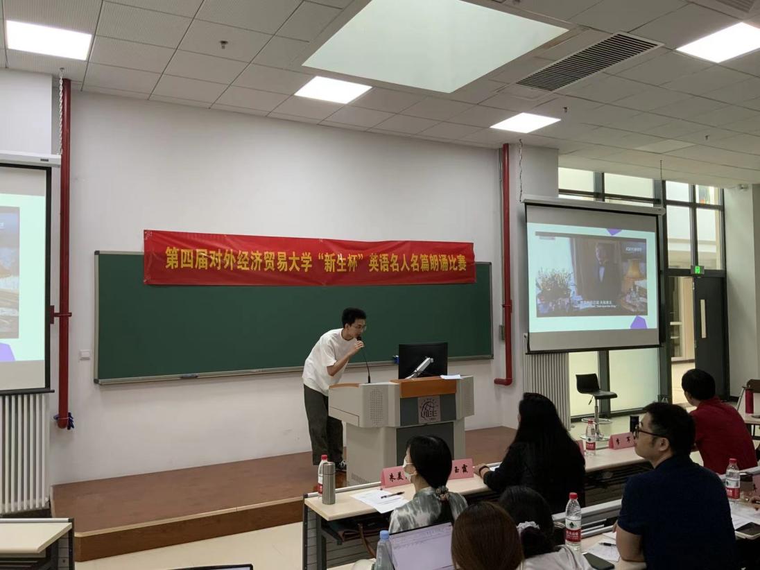 本次大赛评委团由免费a片 资深教师和学生评委构成,包括基础英语系主任李玉霞老师、专用英语系主任助理牟童老师、基础英语系李军老师、朱美慧老师、张冬冰老师,以及2020“新生杯”英语名人名篇朗诵大赛特等奖得主刘心怡同学。大赛决赛要求选手以单人的形式,自由挑选经典英语电影片段并进行现场配音,配音时长约为2分钟。在比赛中,各位选手们的精彩表现激起阵阵热烈的掌声。
