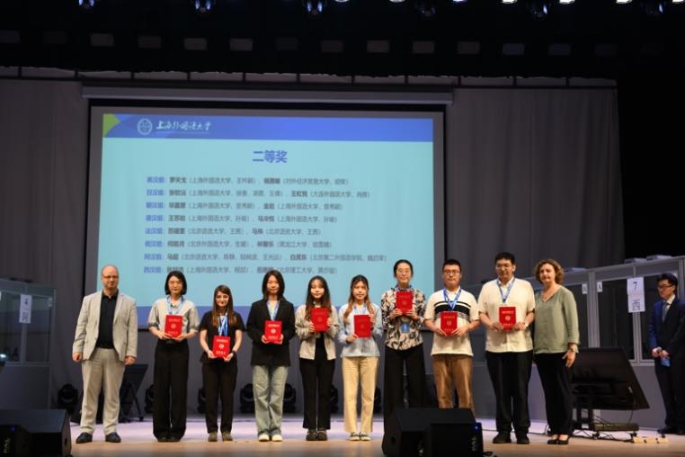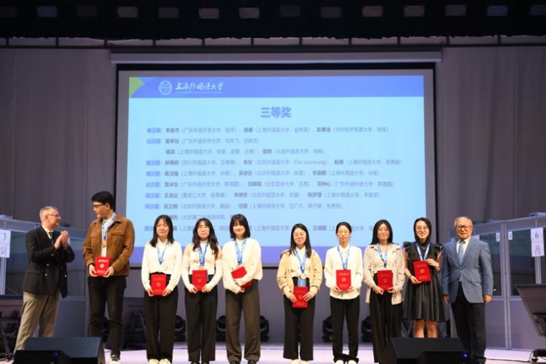 在现场决赛中,选手们需完成三项同传任务,即一次将外语译入中文,两次以其他选手译出的中文作为接力语译入外语。每轮比赛时长45分钟,分别播放三个语种的视频材料,每段视频时长约12到16分钟。接力同传是国际组织常用的翻译形式,本次比赛模拟了真实翻译场景,赛题内容覆盖语言文化、低碳转型、基础设施建设、可持续发展等话题,全面考查选手的口译技巧、语言能力、文化素养和知识储备,引导选手紧跟时代步伐、关注国家发展、提升综合素养。大赛英汉组决赛共产生一等奖1名、二等奖2名和三等奖3名。