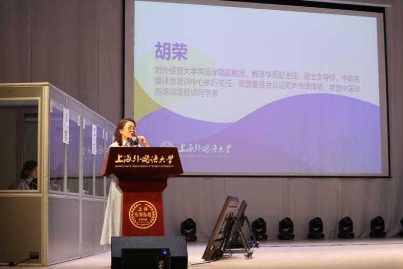 在大赛颁奖典礼和闭幕式上,胡荣老师作为评委代表发言。她指出,在同传过程中,译员的首要任务是将信息准确、清晰地传达给听众,确保翻译后听众能够了解讲话的内容。胡老师还表示,同传是一种高要求的智力活动,初学者有磕绊、有错误是正常的,想要攻克这一难关需要长年累月持之以恒地刻苦练习,除此之外深度思考的能力也十分重要,在口译练习的同时要多阅读、多思考。