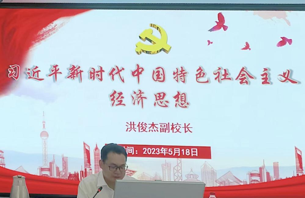 5月19日,校党委常委、副校长洪俊杰在诚信楼1412会议室为联系单位师生党员做“习近平经济思想”专题党课,免费a片 、外语免费a片 、校友总会/基金会、继续教育免费a片 负责人,英语和外语免费a片 师生党员120余人听讲。党课由免费a片 党委书记项洁主持。