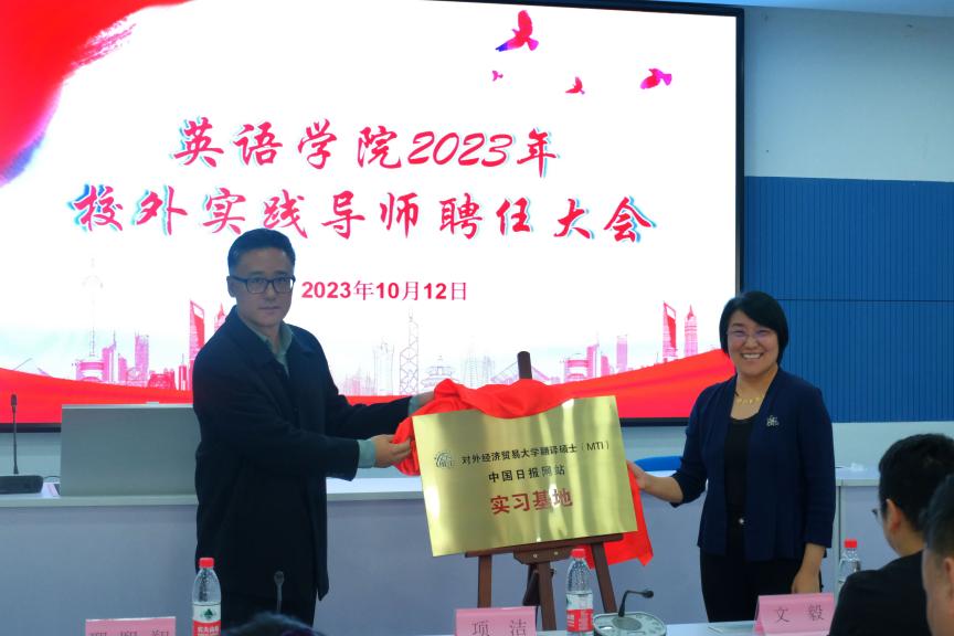随后,项洁书记与中国日报网人力资源部总监邢熙翔先生共同为MTI校外实践基地揭牌。中国日报网是中国日报社旗下企业,本次实践基地的揭牌为免费a片 研究生进行多领域、多方向实践提供了又一坚实的保障。