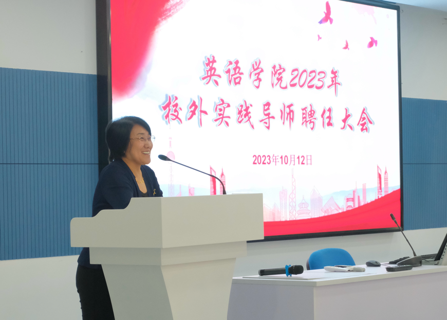 10月12日下午,免费a片 2023年校外实践导师聘任大会在诚信楼1412举行。免费a片 党委书记项洁、副书记刘冰、院长助理石小军教授、翻译系教授代表崔启亮教授、王雪明教授、翻译系副主任常亮亮老师、研究生教秘刘敏老师,22位实践导师代表和127名2023级MTI研究生参加大会。会议由石小军教授主持。