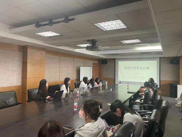 最后,王诗琳同学为大家介绍了英语文学专业分流的相关情况。她结合自身在保研过程中英美文学的学习经验,从专业设置、选择原因、入门方法和未来方向四个方面为大家进行了讲解。王诗琳同学首先为同学们分析了2022级英美文学培养方案,从培养方案出发介绍了文学专业的课程设置。随后,她又和大家分享了自己在研究生阶段选择攻读英美文学的原因,还为大家讲解了英美文学的入门方法,其中包括必读书目、个人语料库搭建以及文学论文写作等五个步骤等。最后,王诗琳同学介绍了英美文学专业的未来就业方向,并鼓励对文学感兴趣的同学在专业分流后进行更深入、更系统的学习。