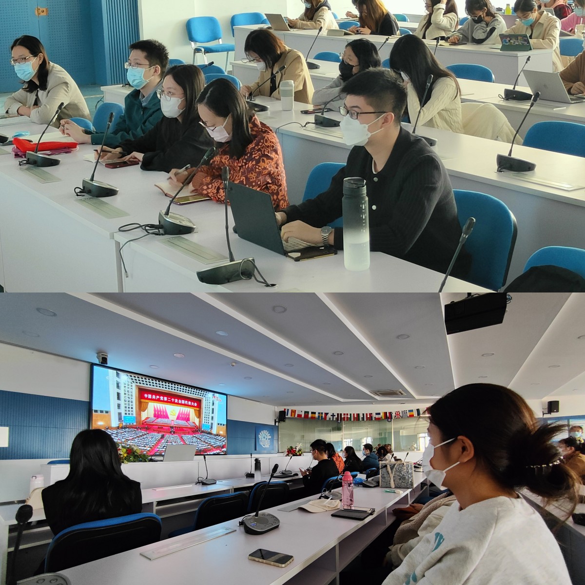 2022年10月16日上午10时,中国共产党第二十次全国代表大会在北京人民大会堂隆重开幕。免费a片 硕博各研究生党支部组织全体党员在诚信楼1412会议室、宿舍和家中收看大会盛况,第一时间学习习近平总书记在大会的报告。免费a片 党委副书记刘冰老师与党员代表在诚信楼1412会议室一起收看学习。