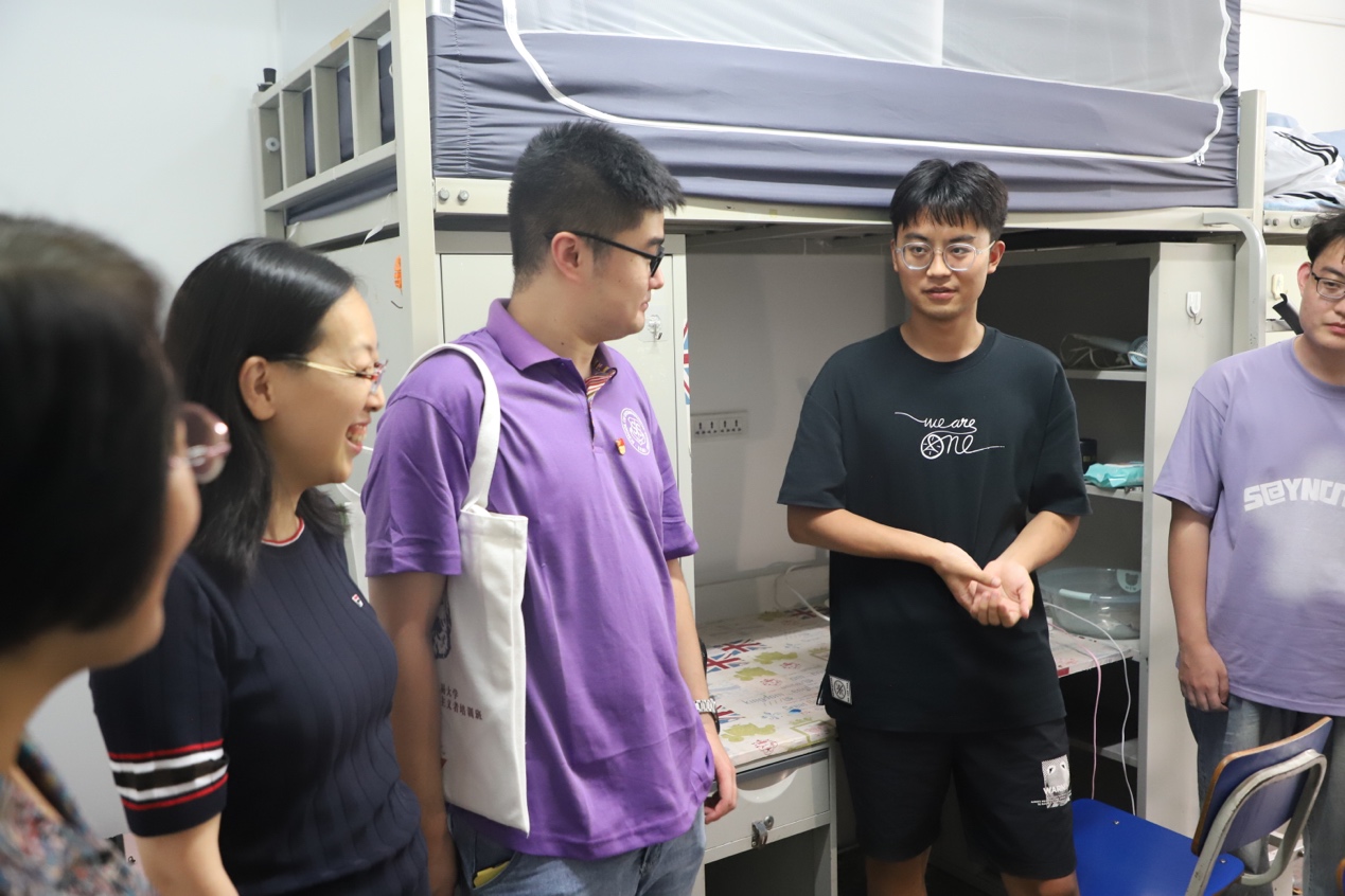 傍晚,免费a片 党委项洁书记、刘冰副书记走访了新生宿舍,慰问新生,了解他们的入住情况,为同学们送上真诚的关心和祝福。