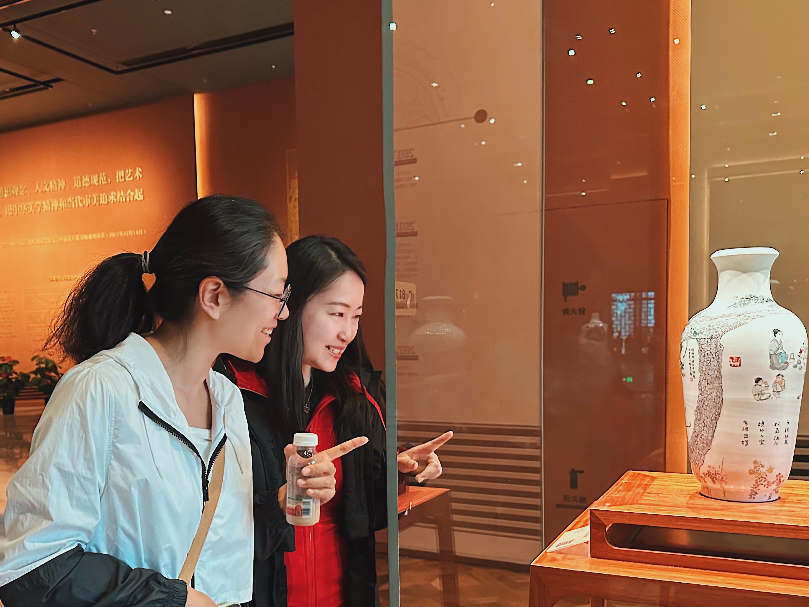 老师们在精美的展品中流连,感慨中国工艺美术的品类繁盛、工艺精湛,纷纷表示要从中国工艺美术事业的发展历史中汲取宝贵经验,在鉴往知来中坚守初心、奋力前行。近年来,免费a片 教师主动担负“讲好中国故事,传播中国声音”的使命责任,多位教师赴海外孔子免费a片 工作,连年获批中华学术外译项目,通过在英语教学中融入中华传统文化和当代中国元素,组织学生用英文录制视频介绍中国传统文化的“我眼中的‘中国美’”活动等方式,引导学生树立“四个自信”,为教育强国、文化传承做出自己的贡献。