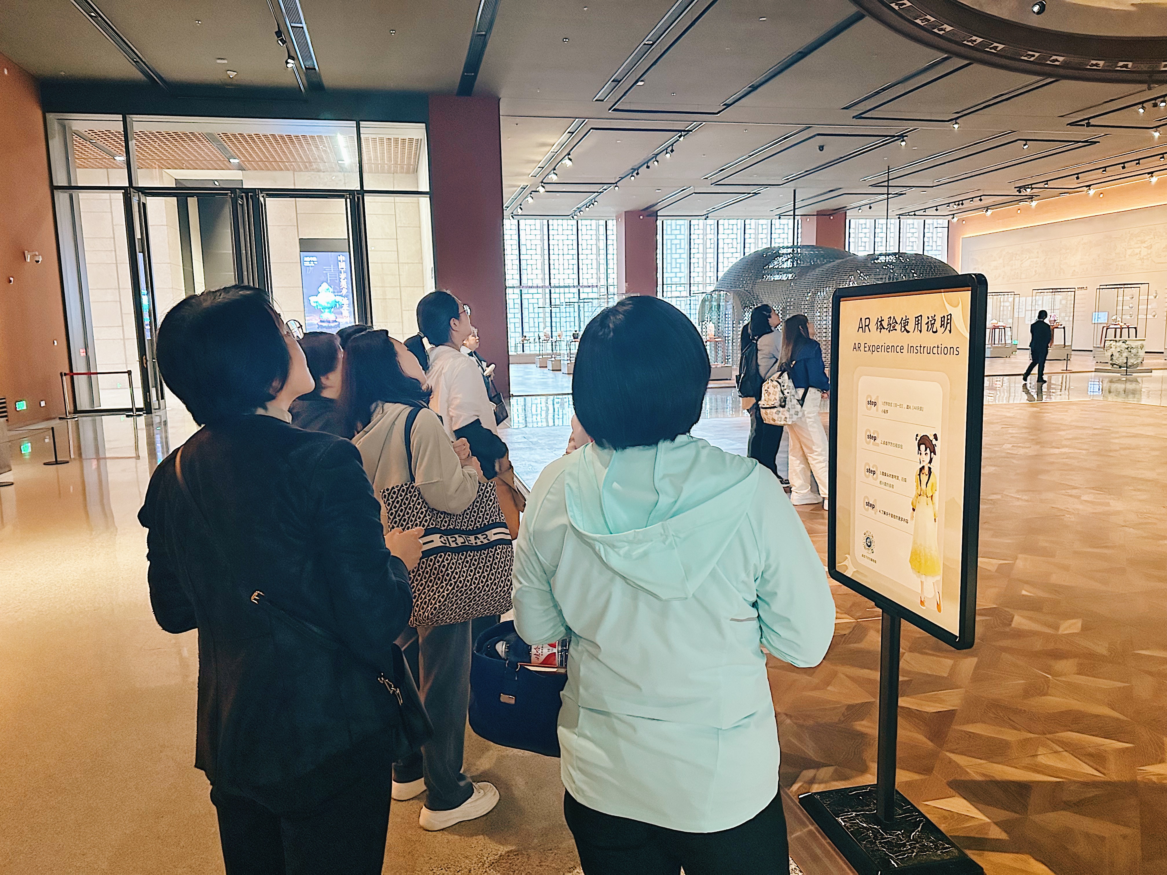 中国工艺美术馆集中国传统建筑之美和现代信息科技于一体,由东向西步入馆内大厅,老师们在象征中华民族顶天立地、生生不息精神的中华福树下合影,开启参观活动。