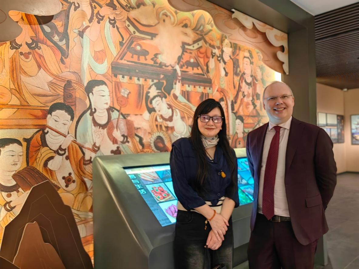 Sandro Jung教授此行还参观了对外经贸博物馆,作为国内第一家以中国对外经贸历史为主线的专业博物馆,馆内展出的我国对外贸易相关的经典物品令Sandro Jung教授印象深刻,并表示这与他从事的物质文化研究有很大关联性。