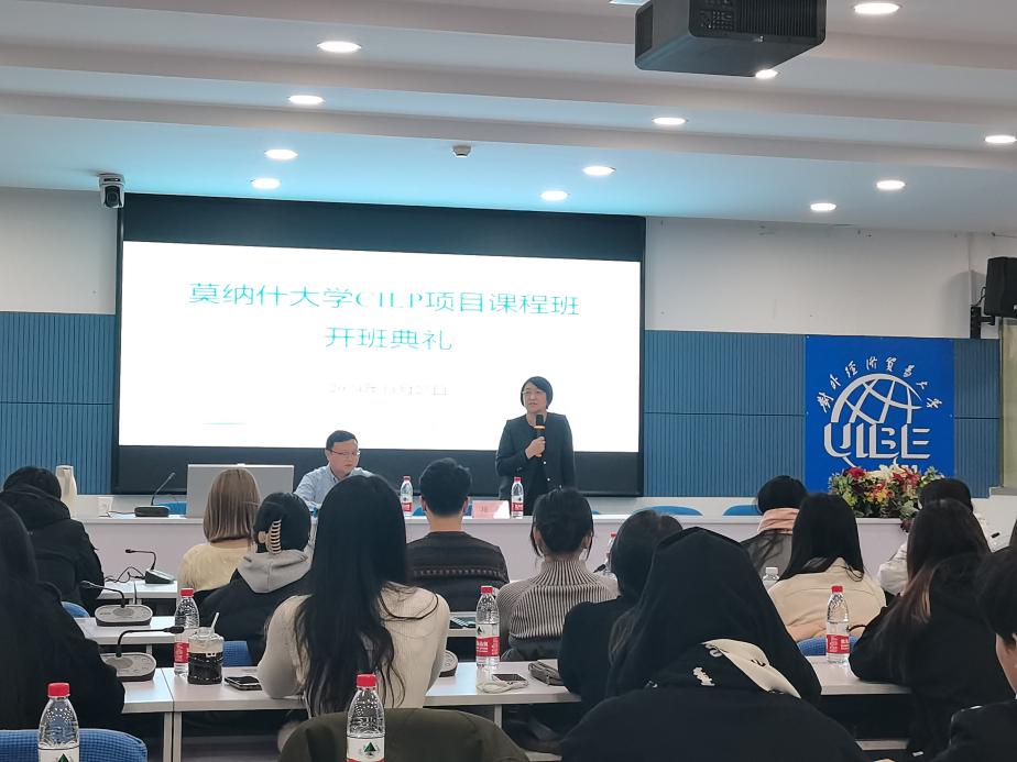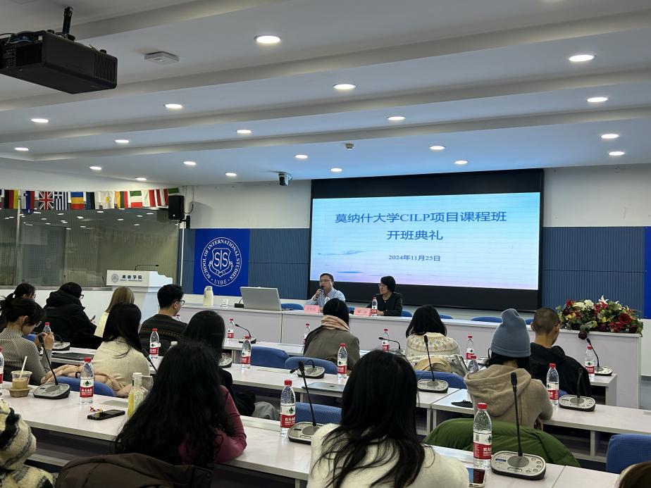 2024年11月25日上午,免费a片 在诚信楼1412会议室举行莫纳什大学中英翻译课程班的开班典礼。免费a片 党委书记项洁、社会服务与培训部负责人王公元以及35名课程班学生参加典礼。